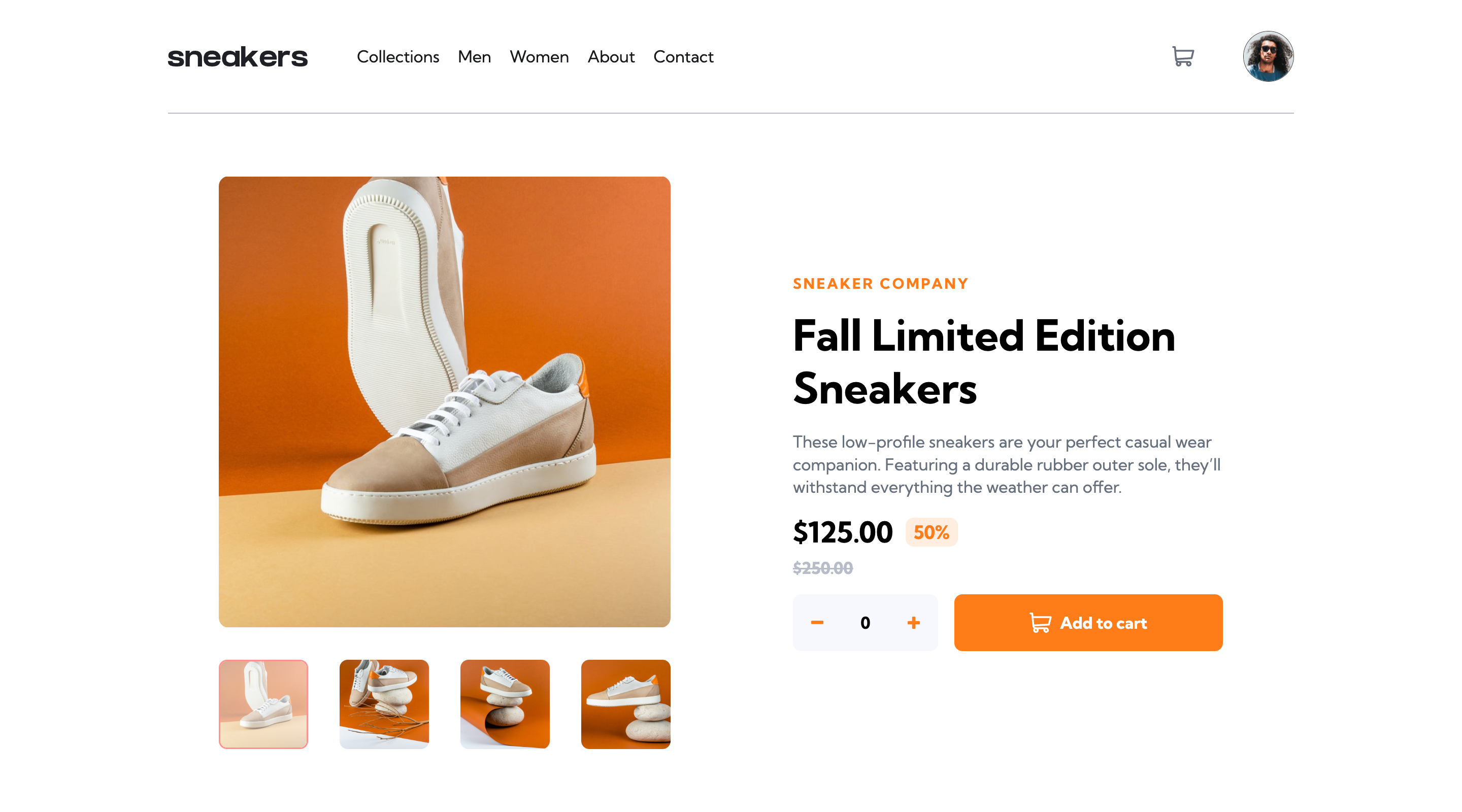 This is a practice e-commerce product page. Features cart functionality, image slides, and image previews.